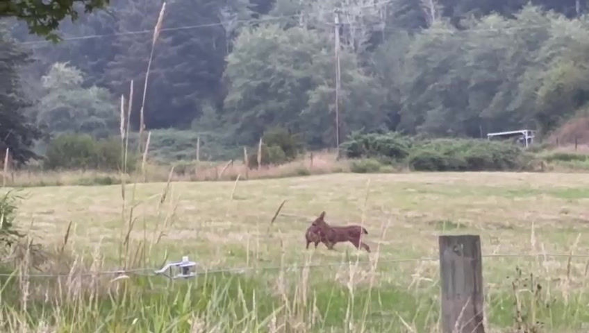 Our native wildlife includes beaver, black bear, black-tailed deer, Roosevelt elk, raccoons, bobcats, bald eagles, owls, hawks, songbirds salamanders, rabbits, bats, frogs, snakes, and pollinating insects. The creek that runs through the land provides a seasonal home for the river otter, cut-throat trout, and the federally protected Coho salmon that come to spawn here. Surrounded by industrial logging practices on publicly and privately owned forests in Western Oregon, we provide a refuge for the wildlife that displaced by these timberland practices. Since we began implementing regenerative and rewilding practices with our small herd, we have seen an increasing diversity of wildlife here including nesting wild mallards, beavers, blue herons, and belted kingfishers.